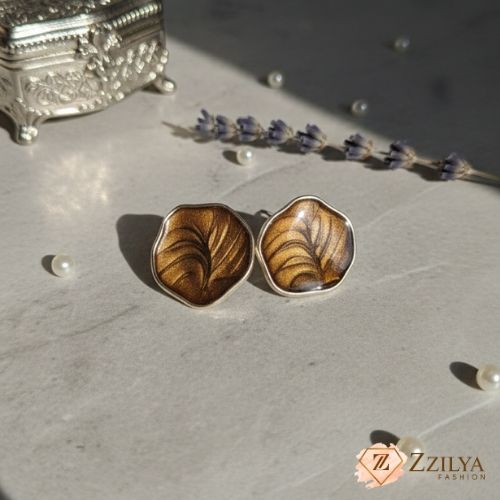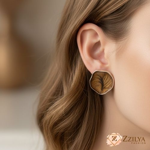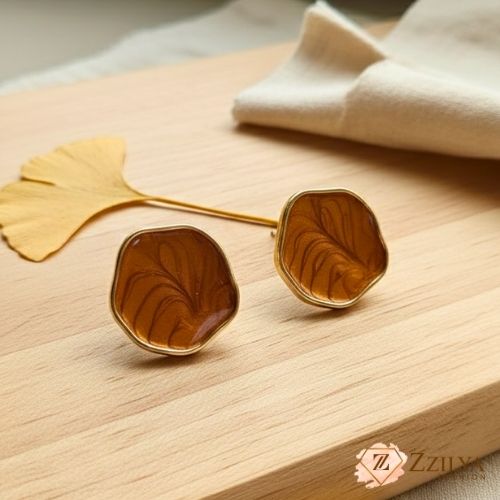 Trendy Abstract Design: The unique, slightly irregular shape and swirling pattern on the resin give these earrings an expensive, artistic look that is currently trending in fashion jewellery.