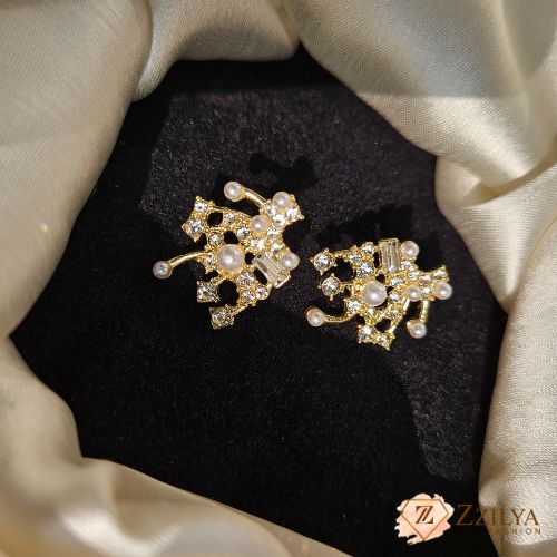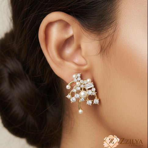 Elevate your everyday style or add a sophisticated finish to your evening look with these stunning gold and pearl stud earrings from Zzilya Fashion.