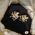 Each earring features a lustrous central pearl surrounded by a cluster of smaller pearls, set within a delicate gold-toned floral design. The combination of warm gold and creamy pearls creates a timeless and romantic piece that will never go out of style. These versatile studs are perfect for the office, a dinner date, or as a beautiful accessory for a bridal party.