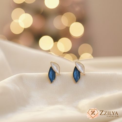 Capture the beauty of nature with our exquisite Sapphire Blue and White Leaf Stud Earrings. These delicate earrings feature a charming, overlapping leaf design—one finished in a rich, opaque sapphire blue enamel, and the other in a lustrous, translucent white/mother-of-pearl effect. Set in a subtle gold-tone frame, they offer a fresh, feminine, and sophisticated look.
