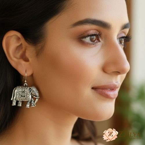 Bring home a piece of tradition! Grab these stunning Oxidized Elephant Earrings today.