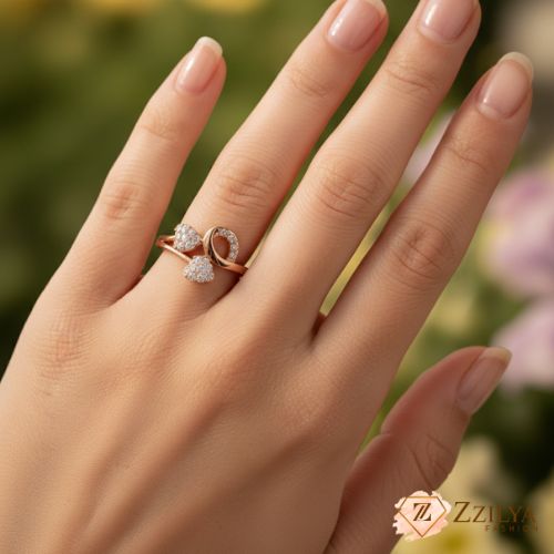 Charming Design: A whimsical yet sophisticated double-heart motif with a contemporary curved band.